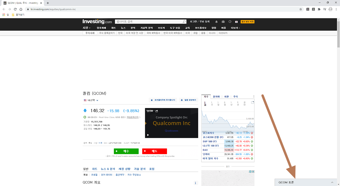 그러다 주가가 왜 올랐는지 사람들의 반응이나 다른 정보가 없나 궁금할 땐 인베스팅 사이트의 토론장을 들어가 보고는 합니다. - kr.investing.com/equities/qualcomm-inc