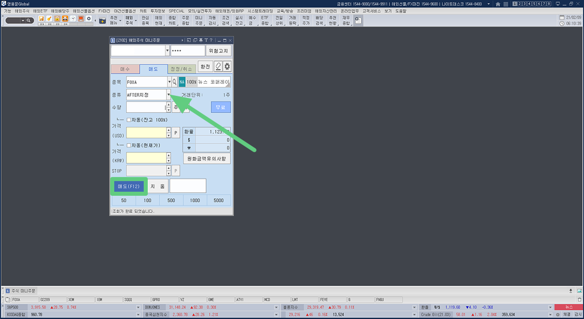 마찬가지로 주식을 매도하는 경우도 종류의 AFTER 지정 메뉴를 선택하시면 애프터마켓 주식 매매가 가능합니다.