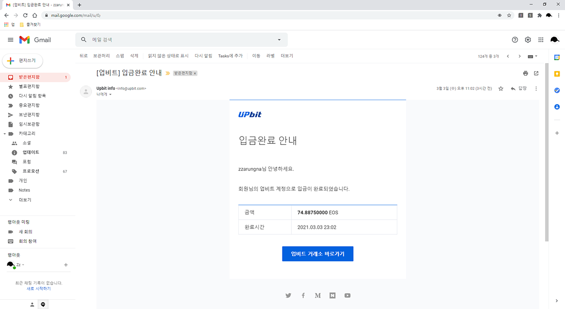 업비트에서 bybit로 잘못 오입금한(출금신청) 내역에 대해서는 다행히 업비트에서 복구해주었습니다. 문의를 올린 이후 대략 3일 정도 걸린 것 같습니다.