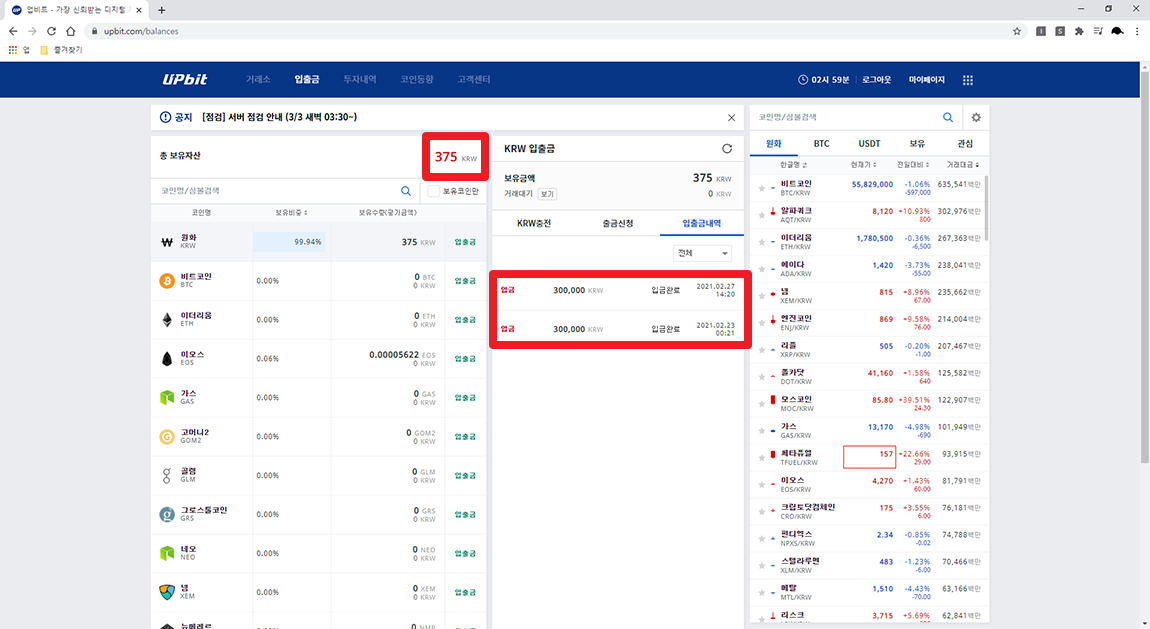 2. 코인의 종류에 따라 출금 신청 수수료 차이에 정확히 알지 못한 점