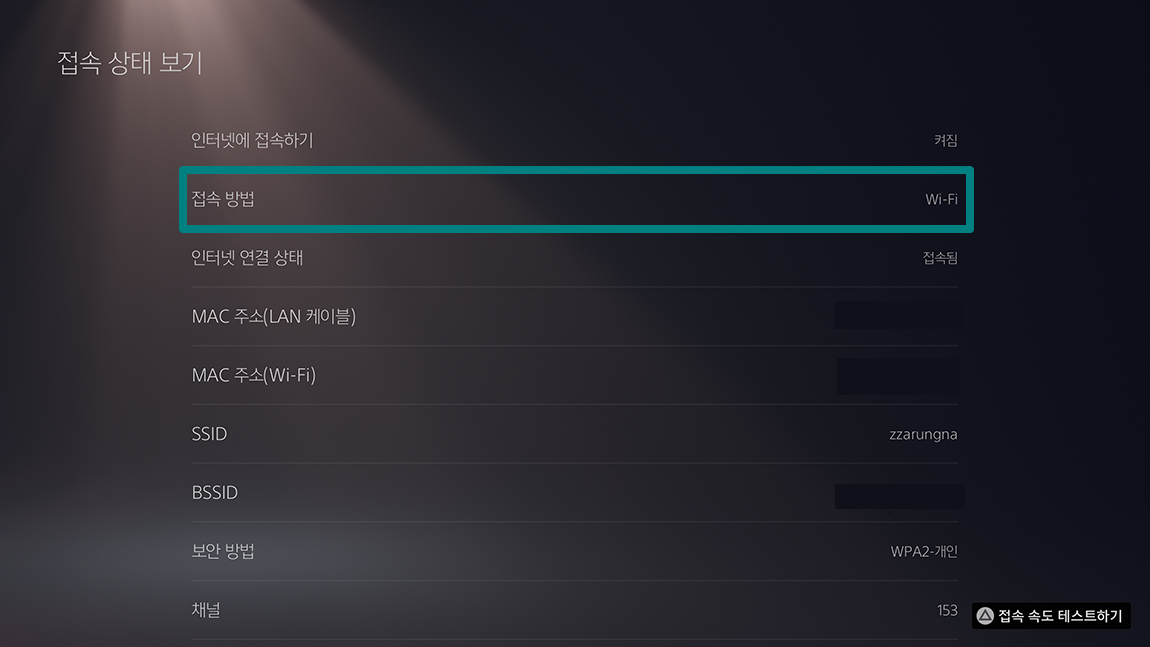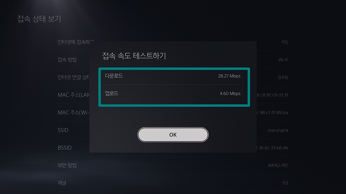 PS5 무선 네트워크 연결 속도 테스트(와이파이)