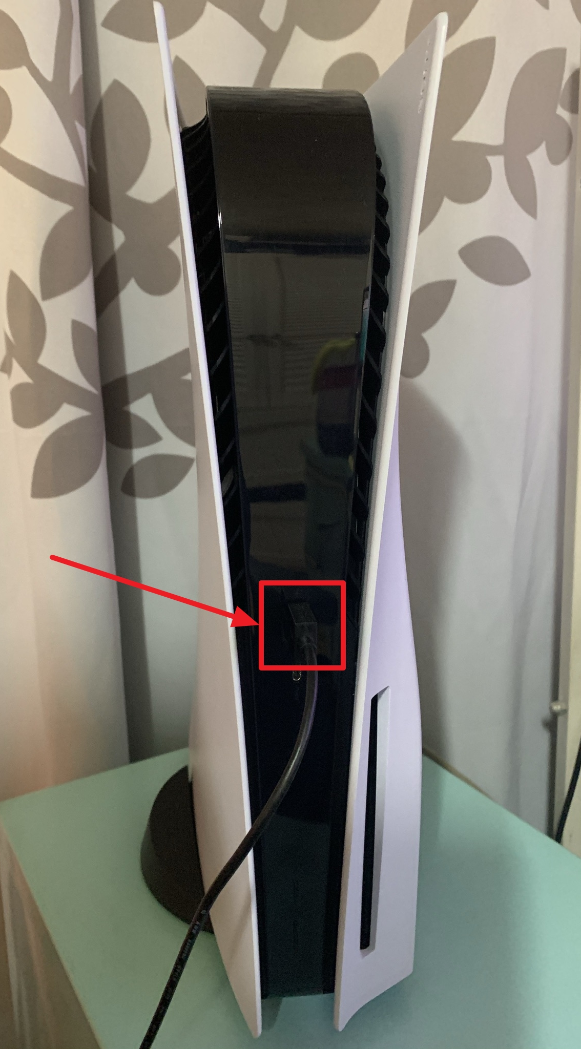 개인적으로 PS5를 세워서 사용하고 있으니 눕혀서 PS5를 사용하시는 분들께서는 참고하세요. 가장 기본적으로 연결해야 할 PS5 기기에 컨트롤러 케이블의 연결 위치입니다.