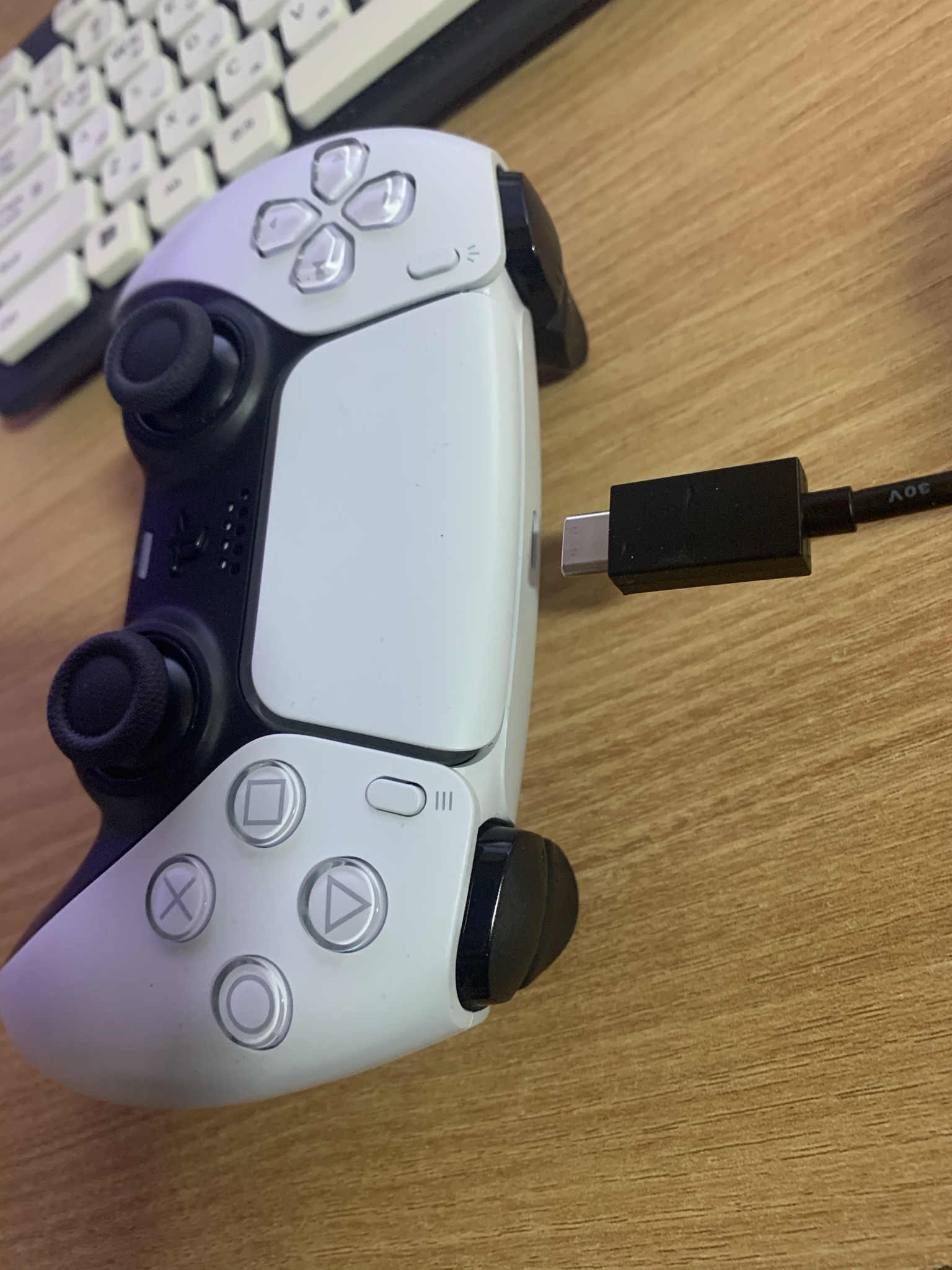PS5 컨트롤러에서 케이블 연결은 아래 이미지와 같이하시면 됩니다.