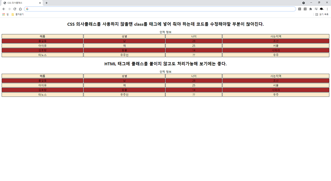 CSS 의사클래스 HTML table 태그에 활용해 보기(nth-child)