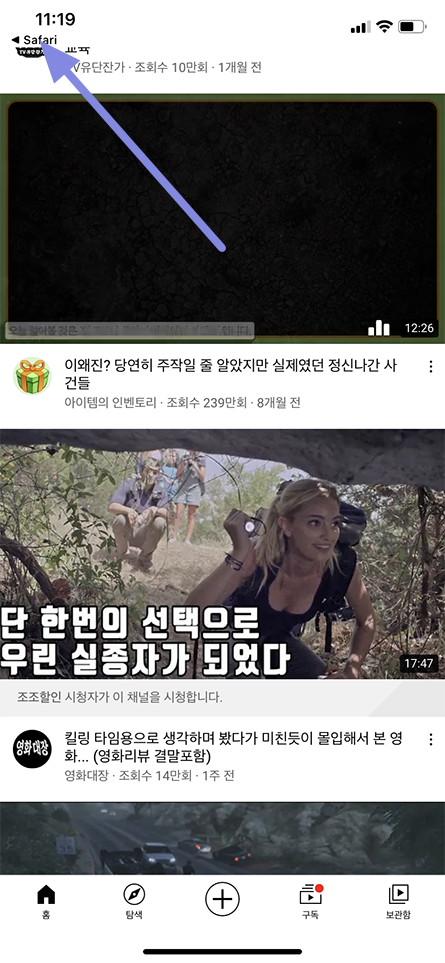 실행해보니 유튜브 앱을 통해서 유튜브 동영상이 실행됩니다. 다시 사파리 브라우저로 돌아가겠습니다.