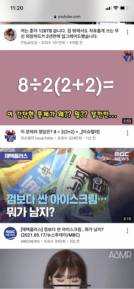 이번엔 브라우저 사이트를 통해 유튜브가 실행되었습니다.
