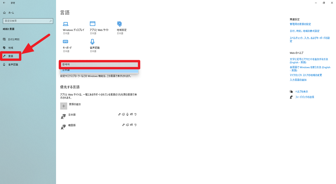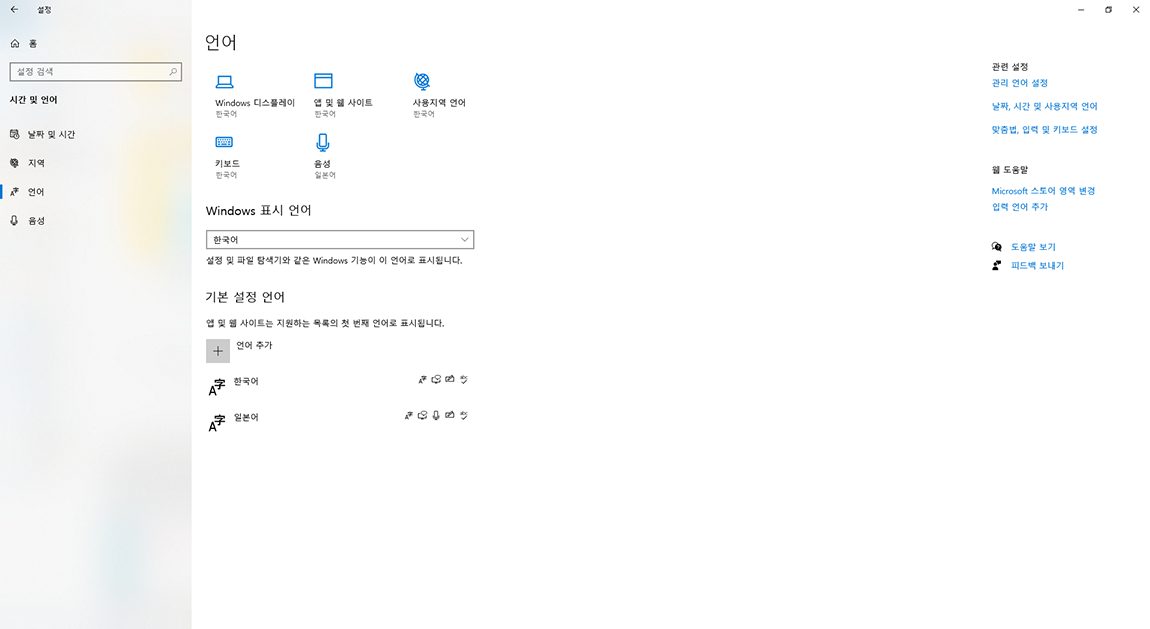 윈도우10 기본 언어 표시 일본어에서 한국어로 변경하는 방법
