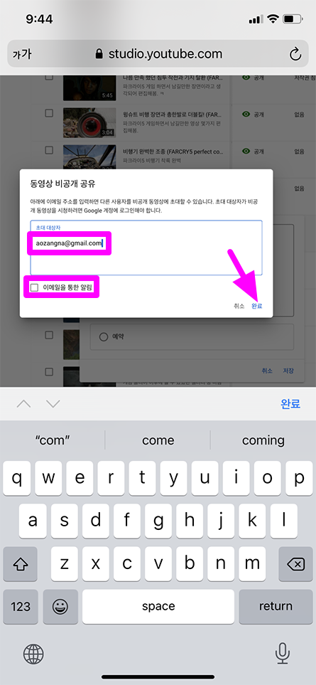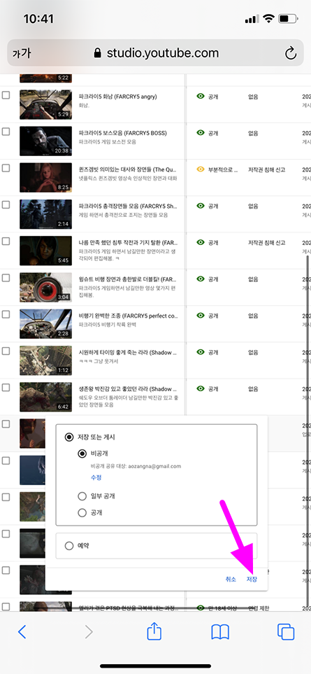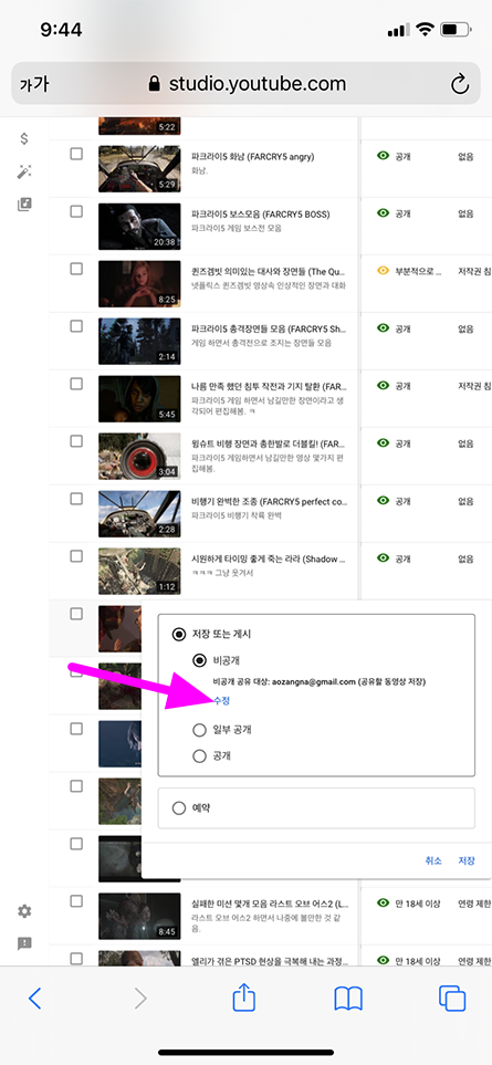 모바일 유튜브 비공개 동영상 원하는 사람에게만 공개 설정 방법