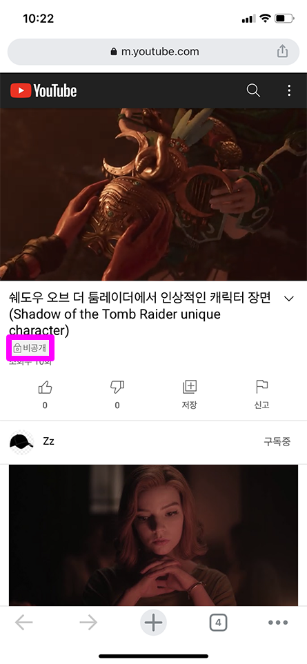 이전에 작성한 기준은 PC 환경 기준으로 작성 하였으며 모바일 환경에서도 원하는 사람에게만 비공개 동영상을 볼 수 있도록 설정할 수 있습니다.