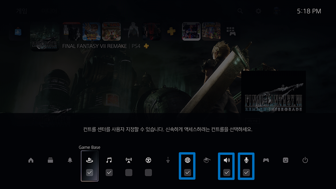 PS5 간편하게 설정 조정이 필요할 땐 컨트롤 센터를 활용하세요.