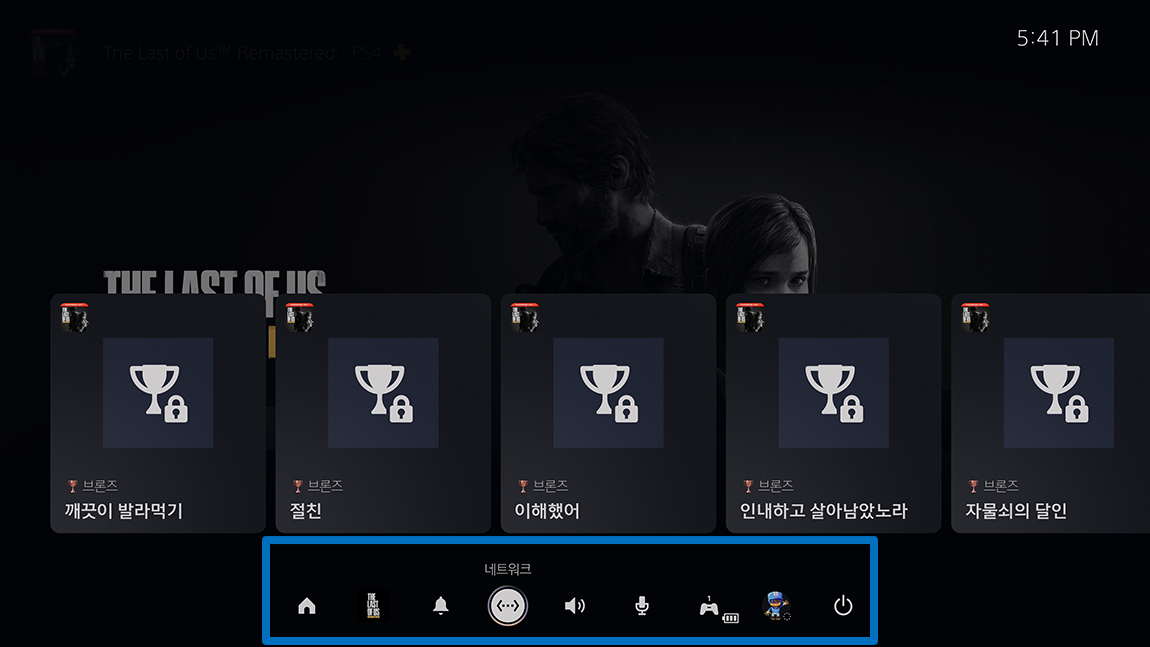하단에 표시되는 메뉴 중 주로 제가 자주 사용하는 메뉴 중 하나는 알림입니다. 알림 메뉴 중 방해 금지를 비활성화하게 되면 게임 다운로드 알림, 트로피 알림, 친구 접속 알림 등 게임 진행 중에 알림이 표시되지 않아 게임에 집중하고 싶을 땐 알림을 비활성화해놓는 편입니다.
