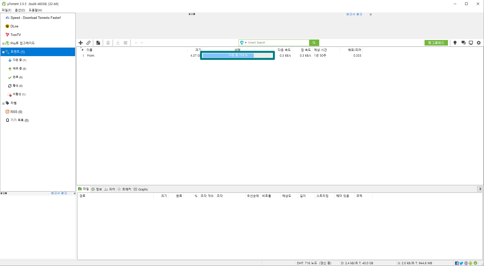 배포/피어 숫자가 높을수록 다운로드 속도가 높다고 생각하시면 되며 배포/피어가 지속해서 0.000이거나 ∞(무한대) 표시가 나는 파일을 다운로드하려면 다른 방법을 사용하시는 게 좋습니다.