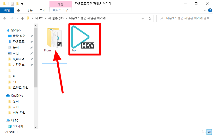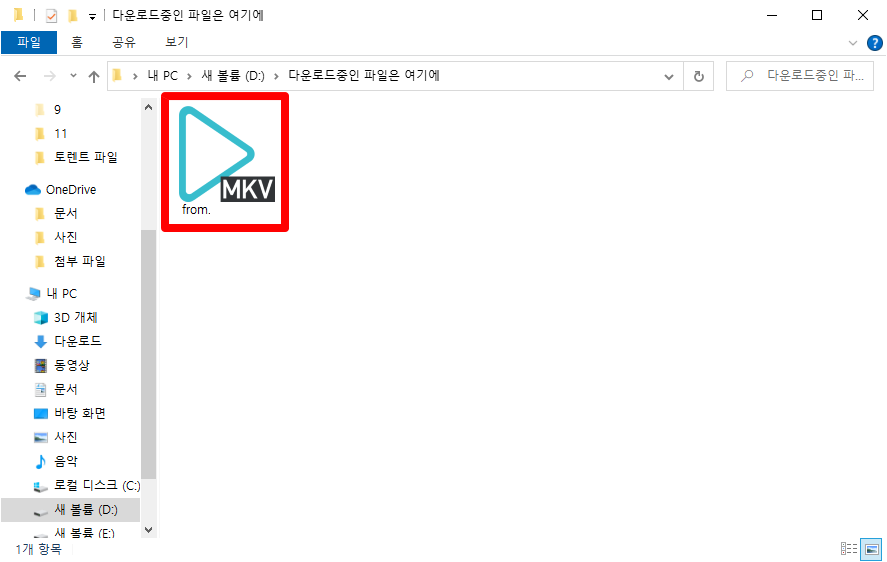 기존에 다운로드받고 있던 파일을 바탕화면에서 D 드라이브로 파일을 옮겨놨습니다.