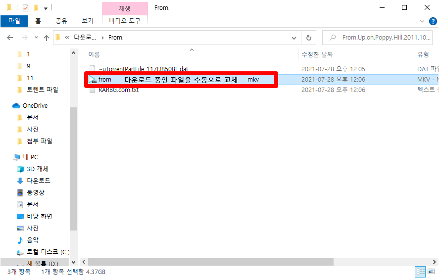 토렌트에서 다운로드 중인 파일을 수동으로 옮기면 어떻게 되는지 개인적인 호기심에 간단히 테스트해 보며 작성하였습니다.