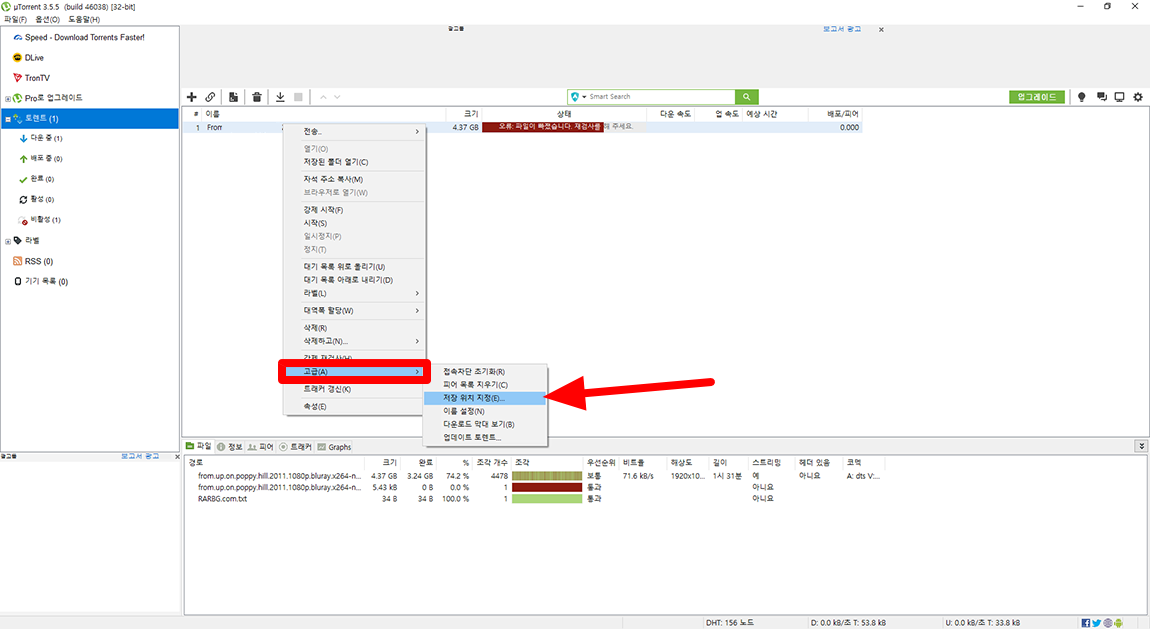 토렌트 다운로드 경로를 수동으로 변경하는 방법ㆍ토렌트 오류 파일이 빠졌습니다. 재검사를 해 주세요.