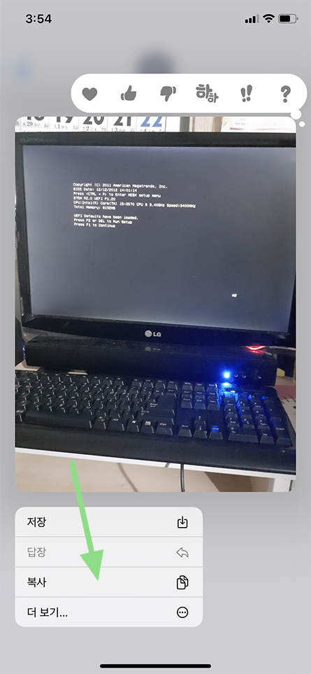 뒤로 가기를 선택한 후 다른 문자에 포함되어 있었던 이미지 파일을 하나 복사해 봤습니다.