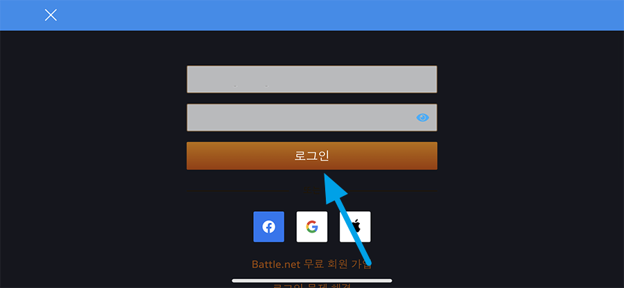 저는 블리자드 배틀넷 앱을 종료한 뒤 실행 후 블리자드 로그인을 진행하였습니다.