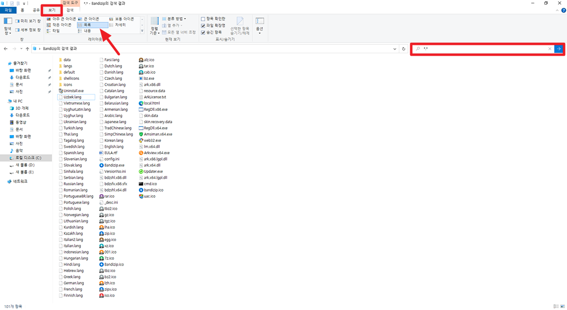 특정 확장자를 가지고 있는 파일이 아닌 모든 파일을 검색해서 한곳으로 파일을 가지고 오고 싶으시다면 아래 이미지와 같이 *.*으로 검색 하시면 됩니다. 이방법은 모든 파일을 검색 하다보니 전체 하드 디스크나 SSD를 검색 하게 되면 검색 하는데 시간이 오래걸리니 파일 위치가 어디에 있는지 알고 계실때 활용 하시기를 추천 합니다. 개인적으로 보기 메뉴에서 목록 기능으로 보는게 편해 저는 이방법을 주로 사용해 파일을 확인 하고는 합니다.