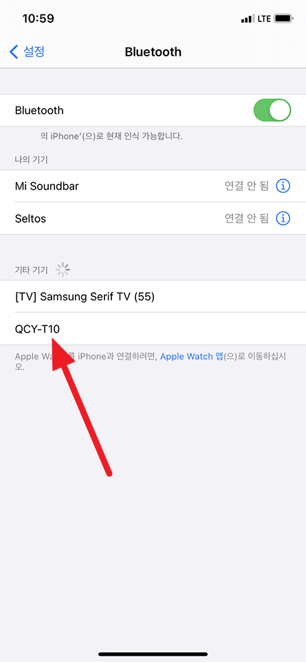 다시한번 Bluetooth켬 아이콘을 터치하고 계시면 됩니다.