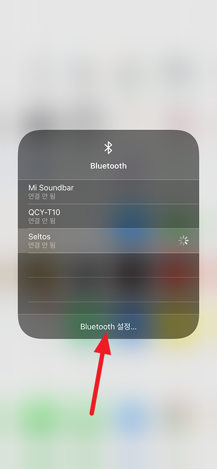 그럼 아래 이미지와 같이 Bluetooth 연결 목록이 나오게 되는 데 여기서 Bluetooth 설정 선택.