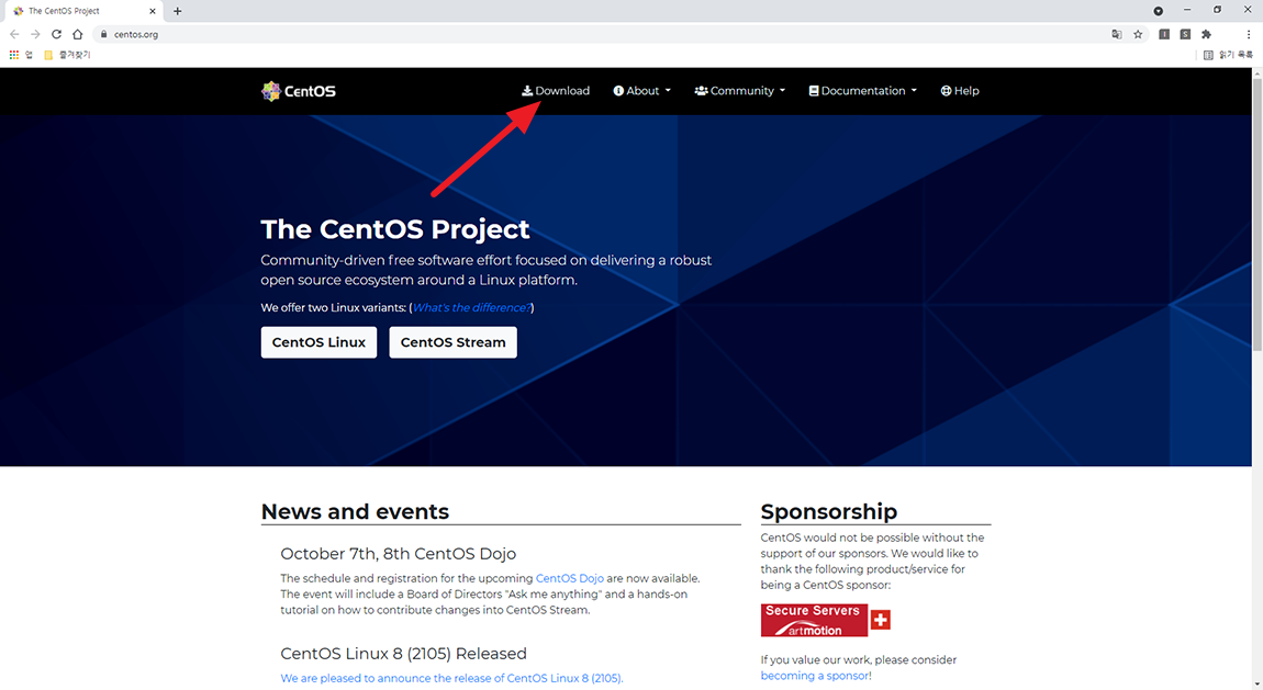 ISO 파일을 다운로드하기 위해 https://www.centos.org/ 사이트에 접속하시고 Download 메뉴를 선택하시면 됩니다. 사이트 구조는 시간이 지남에 따라 변경될 수 있으니 참고하시면 좋을 것 같습니다.