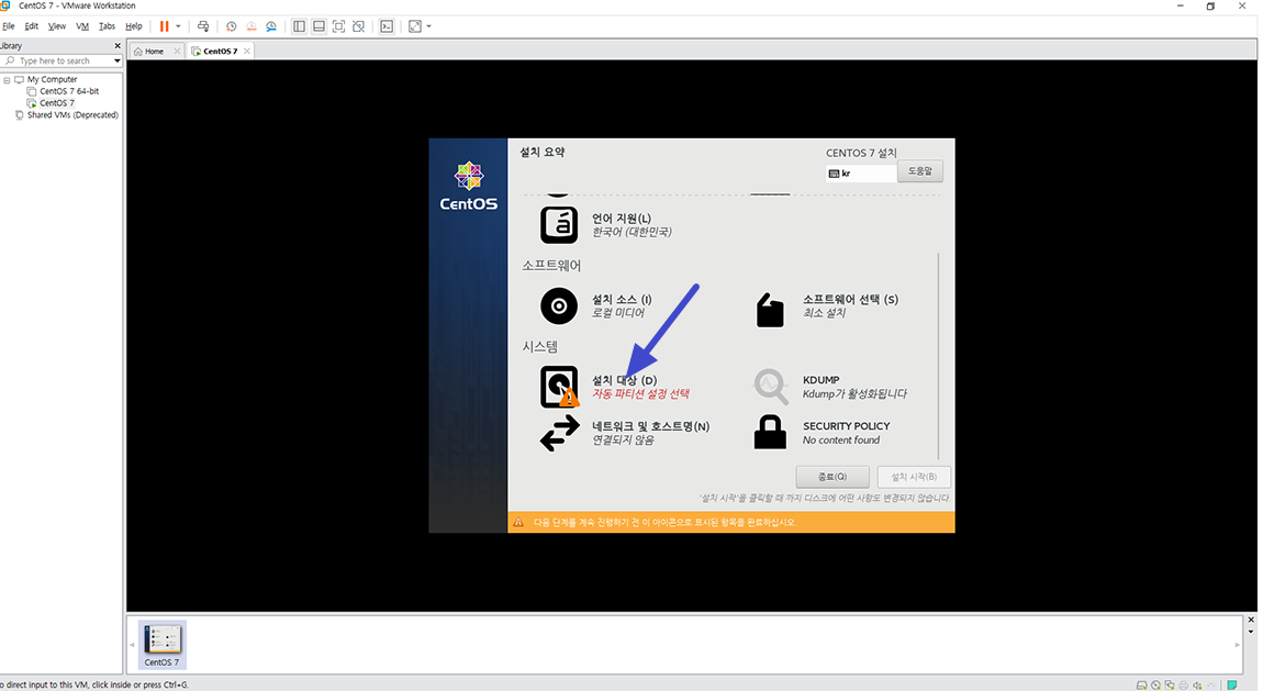 설치 요약 중 시스템만 설정하면 됩니다. 설치 대상 선택.