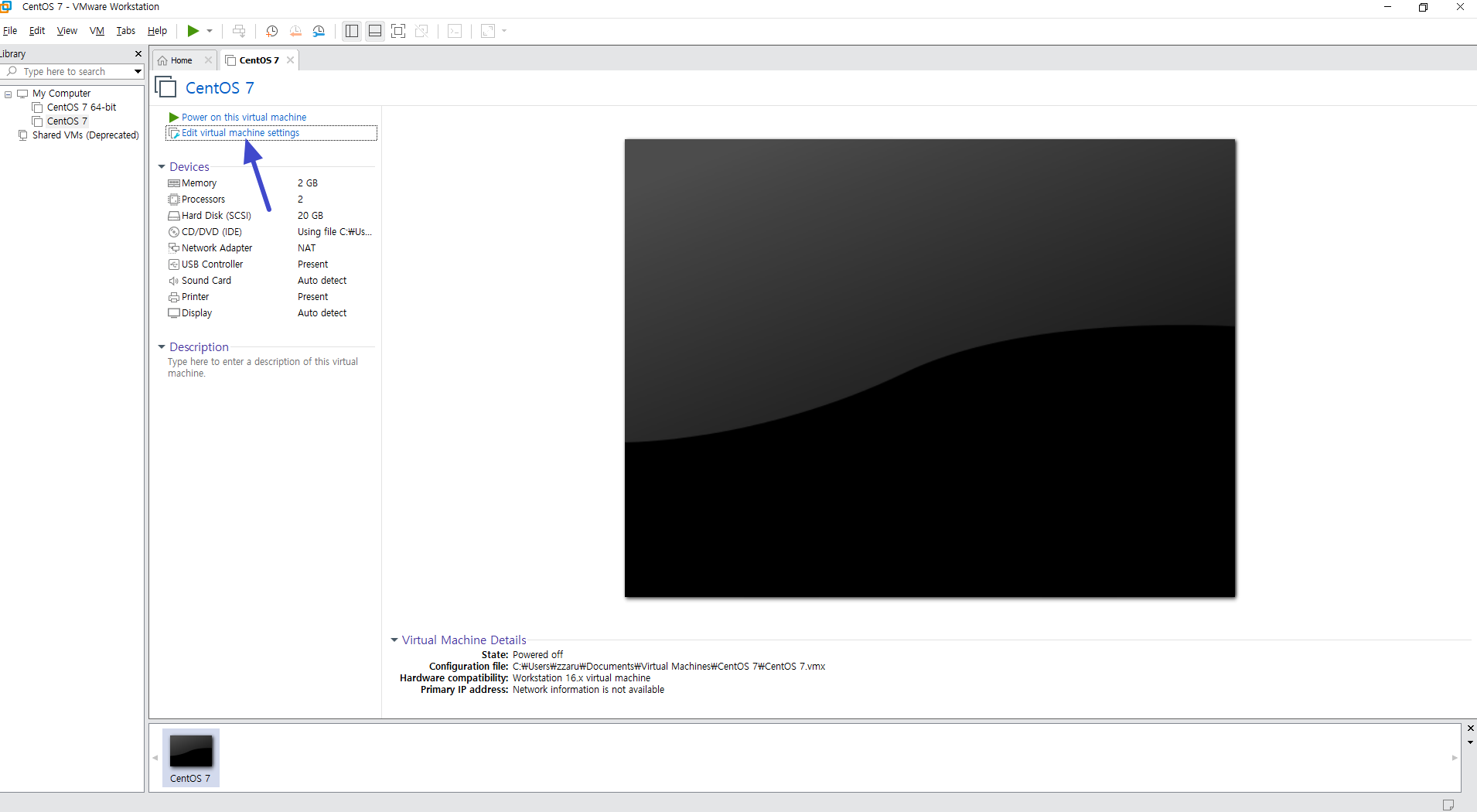 Finish 버튼을 누르셨다면 가상머신 추가 이후에도 Edit virtual machine settings 버튼을 선택해 진행하셔도 됩니다.