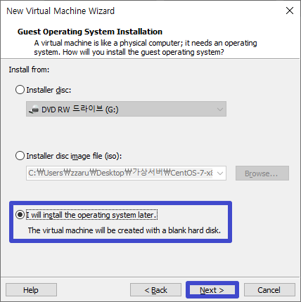I will install the operating system later. 선택 후 Next.