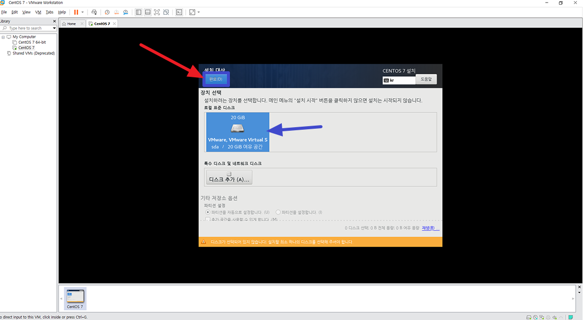 로컬 표준 디스크에 장치를 선택하시고 완료 버튼 누르시면 됩니다.