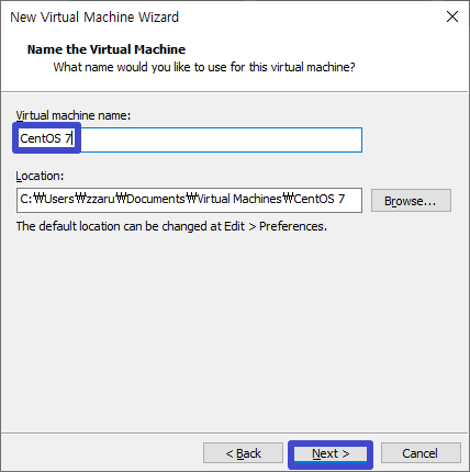 이름은 아무거나 원하는 이름으로 지정 하시고 기본 경로 그대로 사용 후 Next.