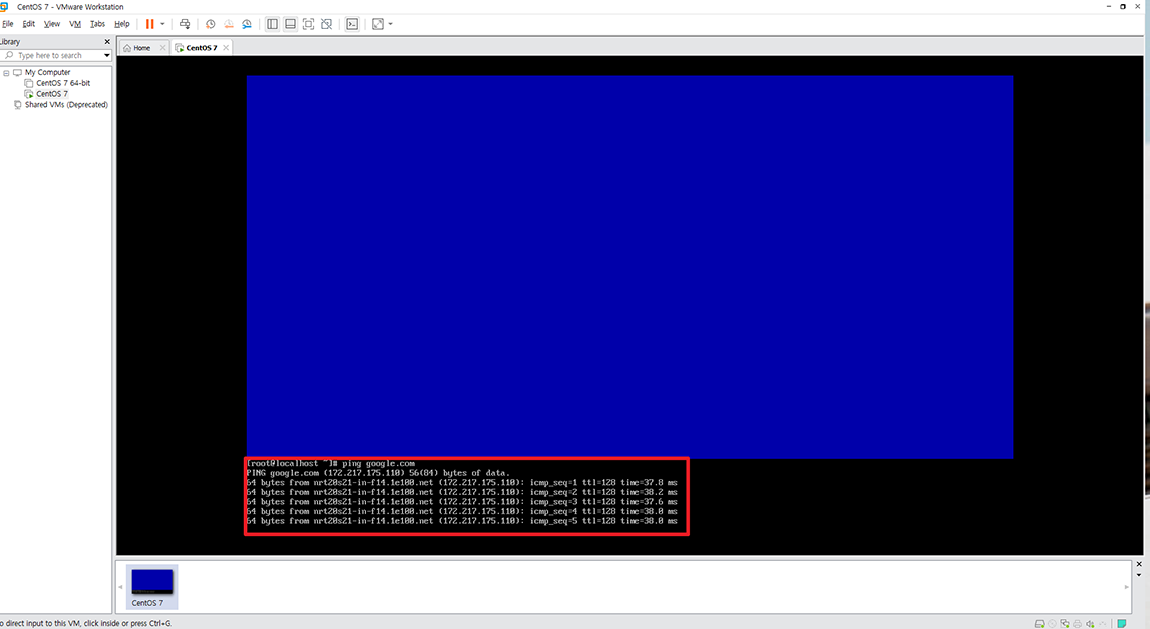 다시 한번 ping google.com을 통해 테스트해보니 정상적으로 네트워크가 작동하는 것을 확인할 수 있었습니다.