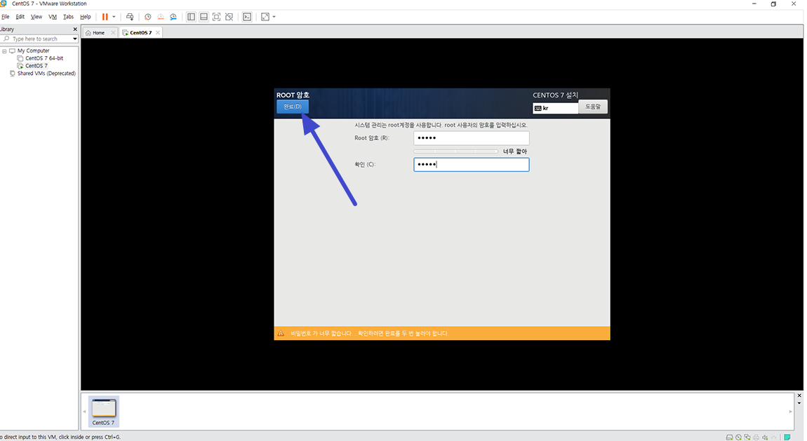 Root 암호를 모두 입력 후 완료 버튼을 누르시고 버튼 선택 이후 반응이 없다면 완료 버튼을 다시 한번 누르시면 됩니다.