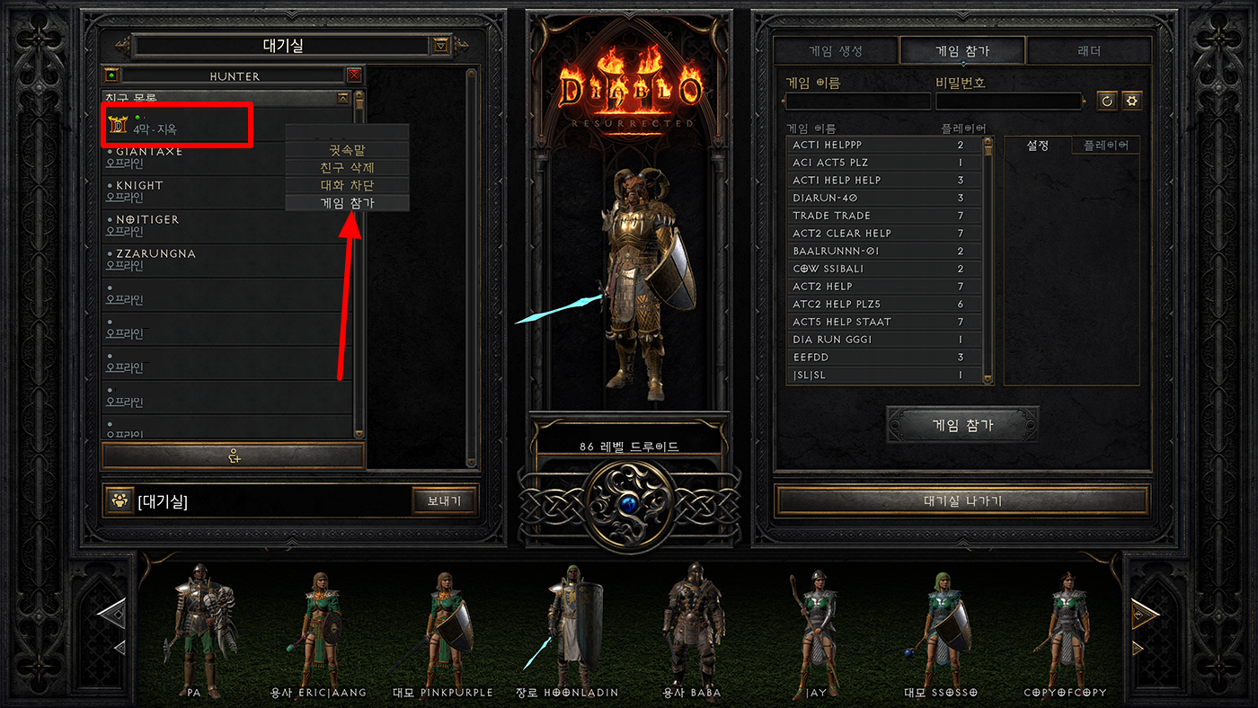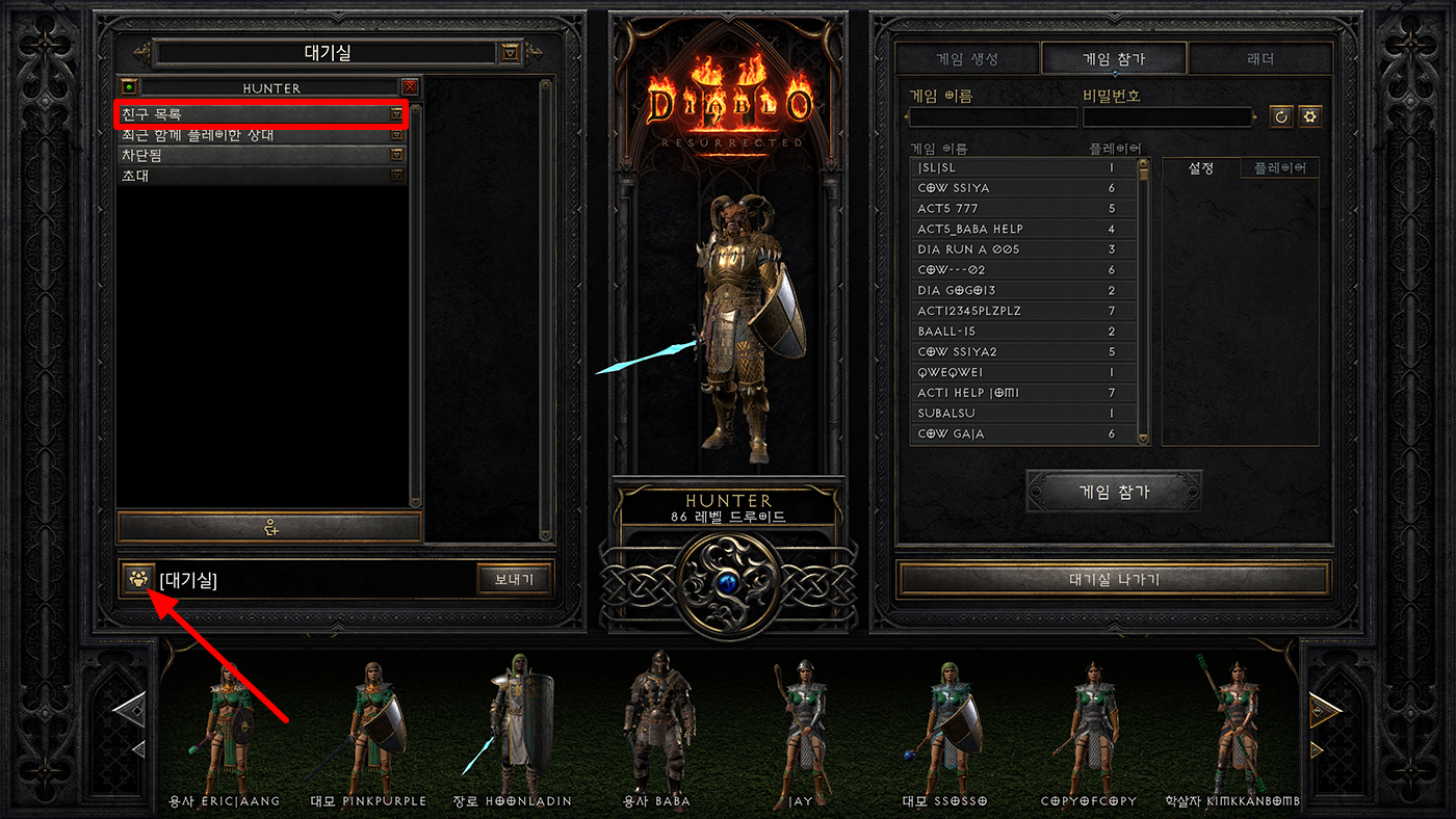 디아블로2 레저렉션 친구 방 들어가기
