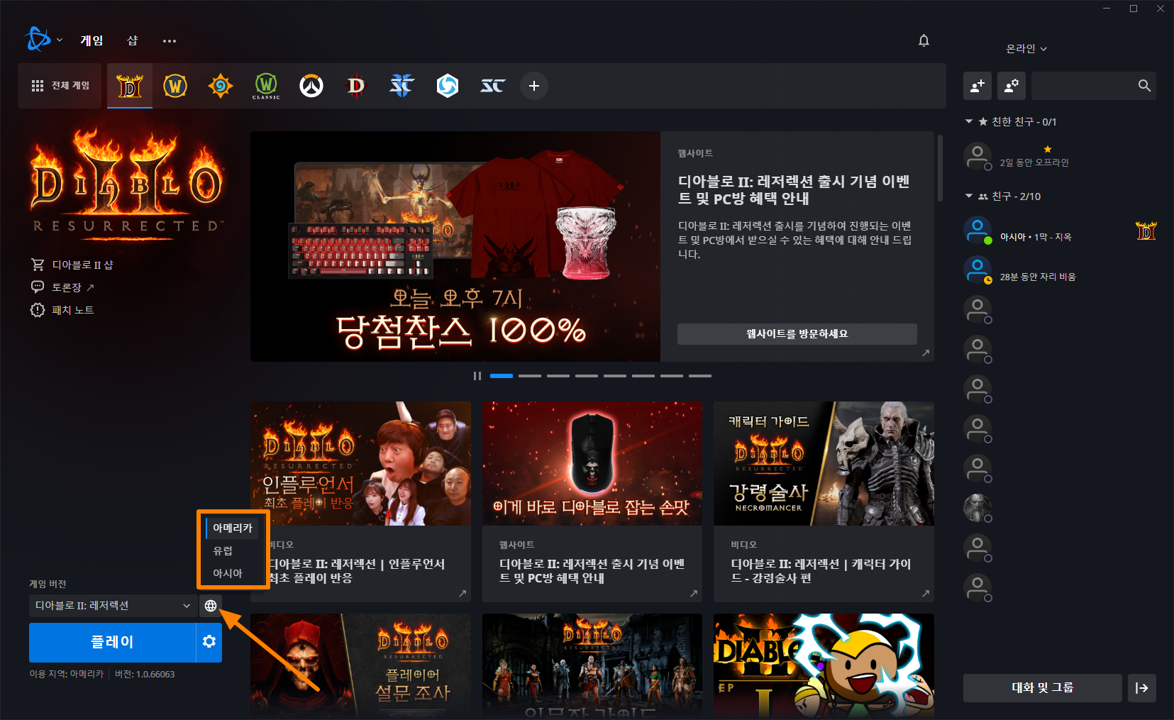 디아블로2 레저렉션 아시아 서버 접속이 안 된다면 해외 서버로