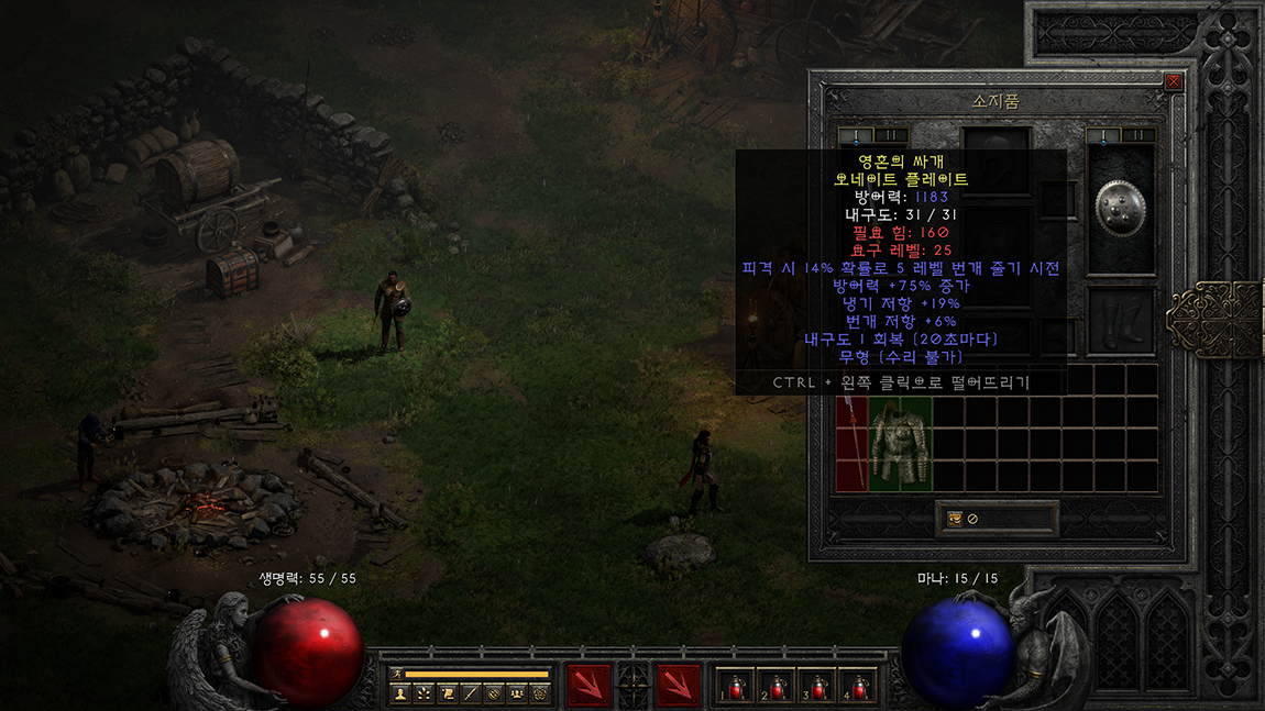 디아블로2 레저렉션 게임을 늦게 시작하시는 분들도 있을 수 있으니 대부분 알고 계시는 내용이겠지만 그래도 한번 정리해 봅니다. 디아블로2 게임을 하다 보면 아이템 하나 넣을 칸도 부족해지는데 수많은 레어, 유니크, 매직 아이템 중 수리가 불가능한 에테리얼 아이템은 가치도 있고 수집을 목표로 하시는 분들이 있다면 아이템을 소지품창에서 확인하지 않아도 에테리얼 아이템인 확인하실 수 있으니 참고 하시면 좋을 것 같습니다.