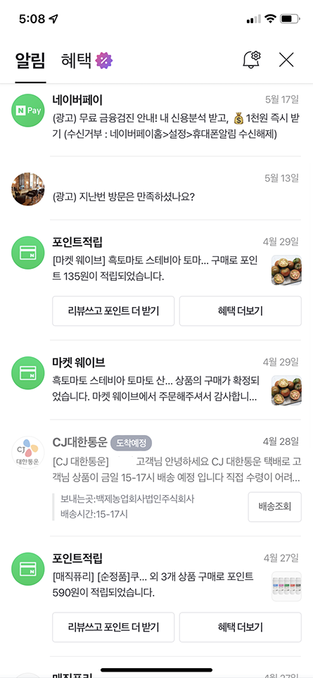 검색 용도로 사용하기보다는 주로 네이버 쇼핑을 통해 인터넷 쇼핑을 하다보니 택배 현황 및 반품 처리 현황 확인이나 미용실 예약 용도로 사용하는 앱입니다.
