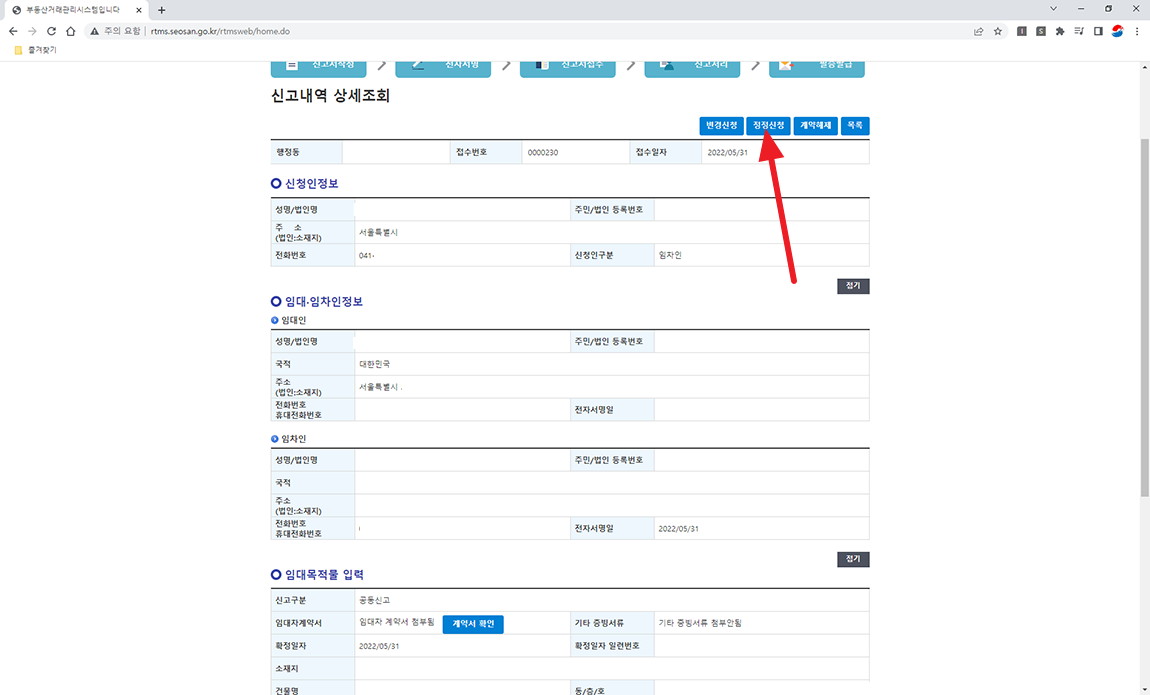 주택임대차신고 서류 수정하기