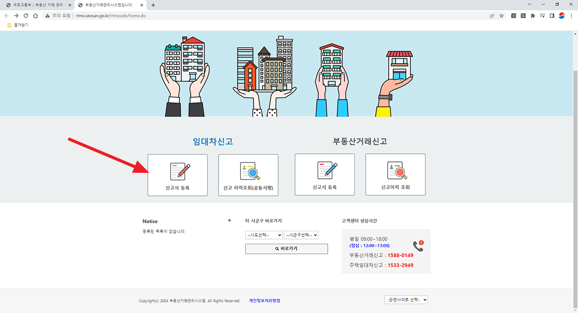 결과적으로 임대인인 제가 직접 주택임대차 신고를 인터넷으로 진행해 봤습니다. https://rtms.molit.go.kr/index.do 국토교통부 사이트에 접속 후 계약하는 부동산 지역을 선택하시고 신고하기를 누르시면 됩니다.