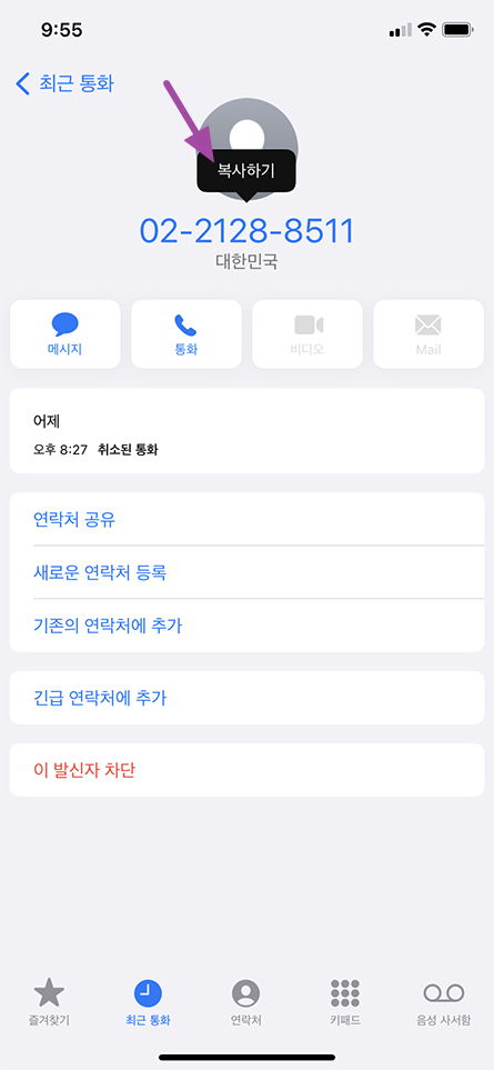 복사하기 기능을 이용하면 전화 번호를 기억하려고 통화목록을 다시 확인 하지 않아도 되니 좀 더 편하게 아이폰을 사용할 수 있었습니다. 필요하신 분들은 참고 하세요~