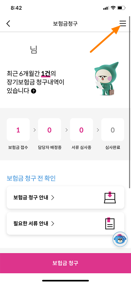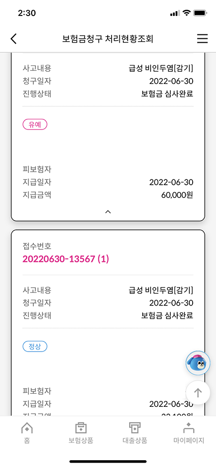 보험금 처리가 어떻게 되고 있는지 알고 싶으시다면 메뉴 버튼을 눌러 주시기 바랍니다.