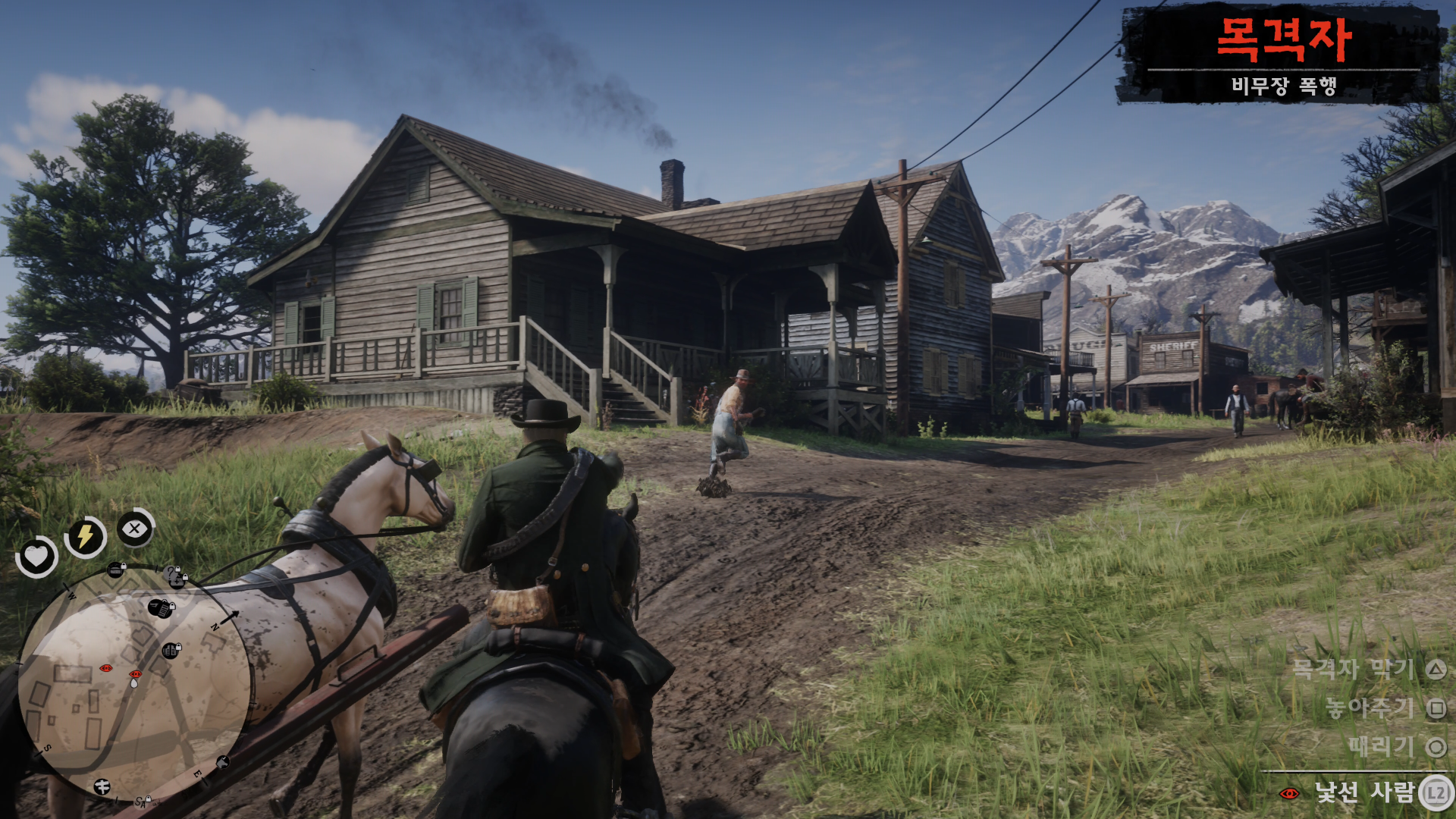 락스타 스튜디오 대표작인 GTA 게임과 비슷한 시스템이 있습니다. 마을에서 범죄를 저지르게 되면 현상금이 붙게 되며 보안관이 저를 잡으러 쫓아오는데 이런 시스템 자체가 게임 속에 있는 현실감을 더욱 반영 하다 보니 현실에서 하지 못하는 행동을 마치 게임 속에서 마음대로 저질러 볼 수 있다는 부분이 이 게임에 매우 큰 매력 포인트였던 것 같습니다. 목격자 잡으러 가다가 굉장히 곤란한 상황에도 많이 처했던 기억이 납니다.