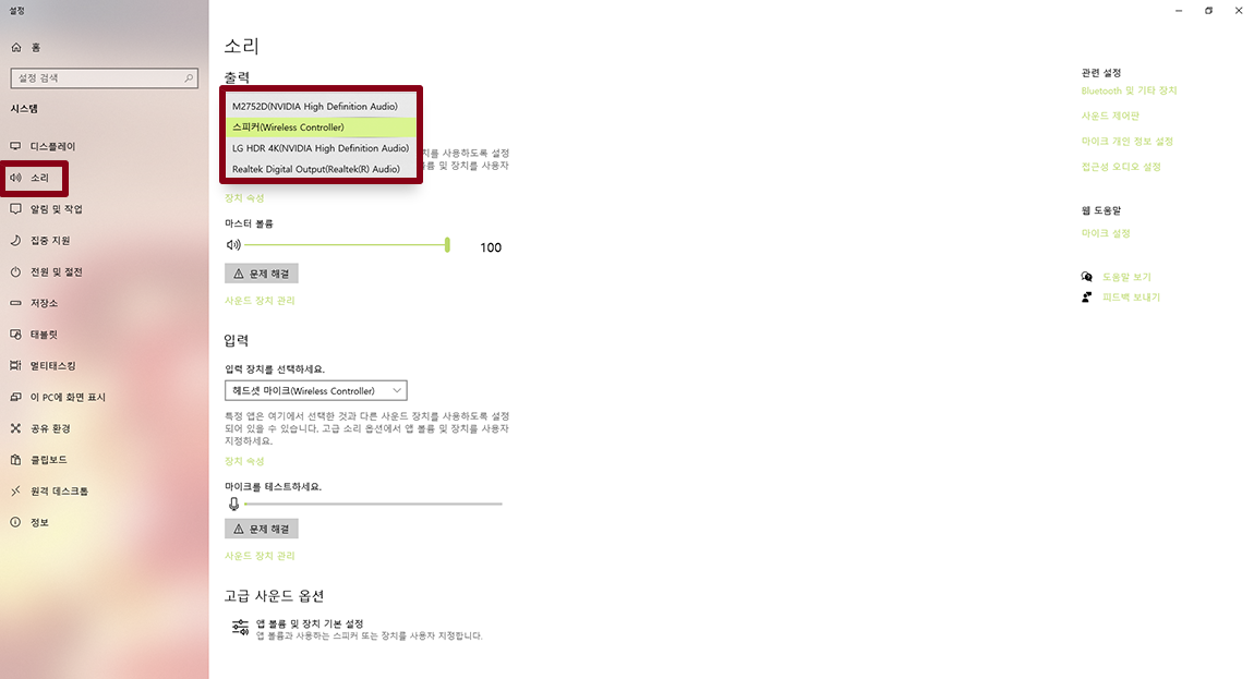 윈도우10 운영체제 기준으로 가장 간단한 해결 방법은 플스 컨트롤러 연결 전 소리 사운드를 누르시고 기존에 오디오가 어떤 장치로 연결되었는지 확인하시면 됩니다.