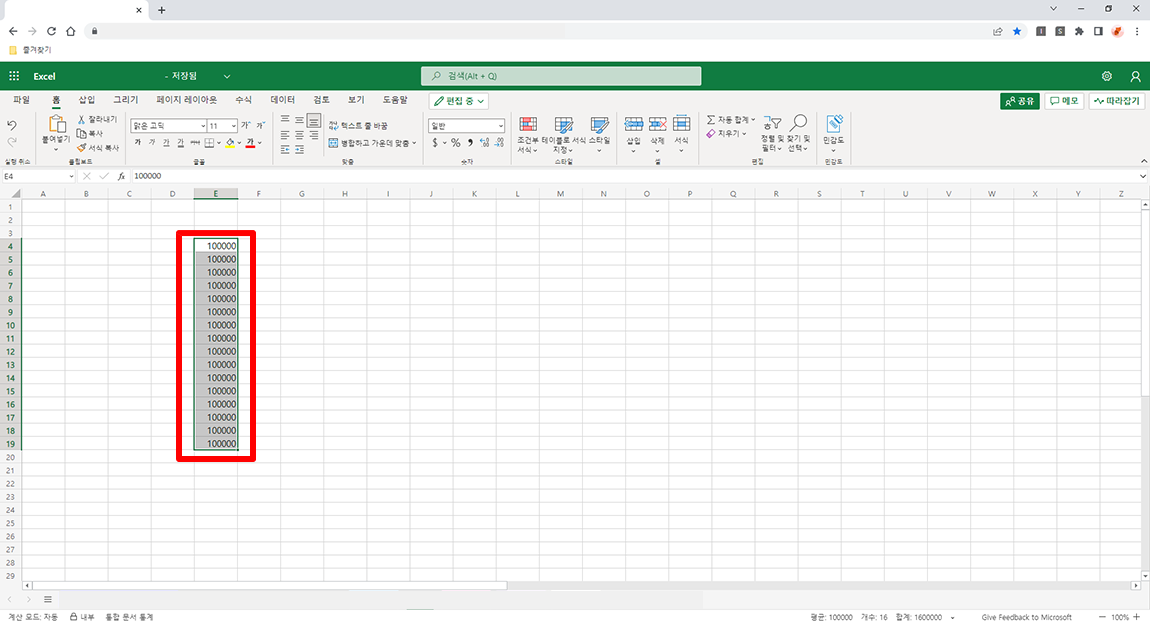 웹에서 엑셀(오피스365) 작업 시 ctrl+d 단축키가 작동하지 않고 브라우저 즐겨찾기 단축키로 반응하는 경우가 있습니다. 아무래도 웹에서 엑셀을 사용하다 보니 브라우저 단축키와 엑셀 단축키가 겹치는 현상으로 단축키가 적용이 안되는 경우도 있는 것 같습니다.