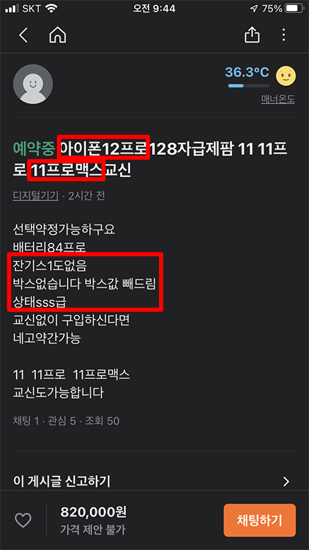 제 실수로 구매했지만, 판매자는 환불해줄 생각이 없었습니다. 그래서 서로 간에 좋지 않은 이야기도 주고받고 그랬습니다. 그렇게 기분이 완전히 엉망이 된 상태로 중고로 산 아이폰을 당장 되팔아야겠다고 생각했습니다. 사실 제가 기기를 다시 되파는 것이 아니라 허위 물품으로 환불을 끝까지 받았어야 했는데 당시에는 그런 생각까지 도달하지 못했던 것 같습니다.