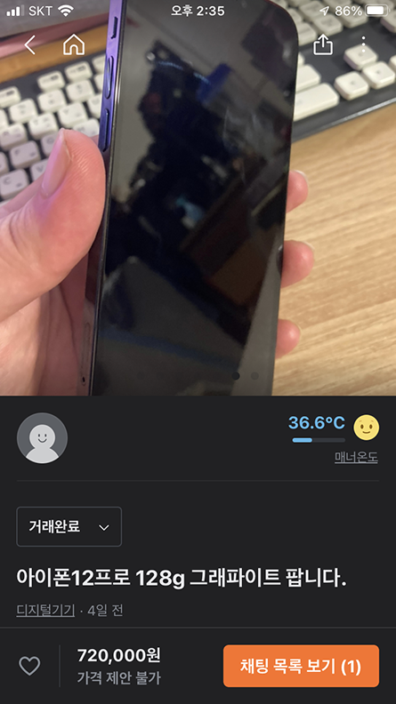 결국엔 제가 샀던 아이폰12 프로는 당근마켓을 통해 업자의 손에 넘어갔습니다. 제값을 받기 위해선 끈질기게 기다리며 판매했어야 했지만, 당시엔 화가나 협상할 생각이나 기다릴 생각을 하지 못했던 것 같습니다.