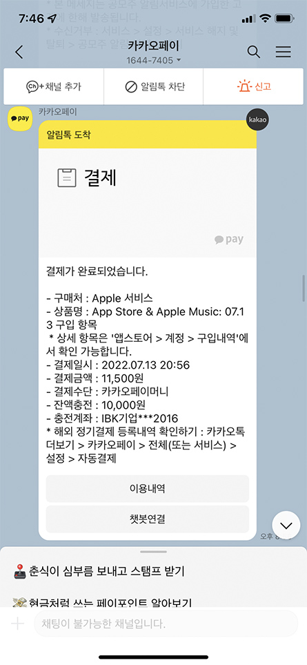 알림만 간단히 차단할 수 있도록 알림이 오는 메시지에서 설정하는 기능을 제공해 주었으면 좋았을 텐데 꽤 복잡하게 메뉴에 접근해 서비스를 해지해야 알림이 오지 않는 부분은 조금 불편한 것 같기도 합니다.