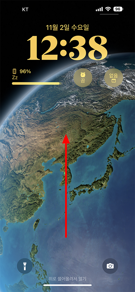 아이폰 14 프로맥스 기준이긴 합니다만 잠긴 화면에선 아래 이미지와 같이 화면 중간 부분에서 위로 스와이프하시면 지나간 알림 목록을 확인하실 수 있습니다.