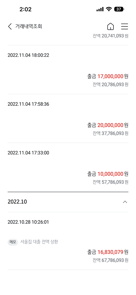 일일 이체 한도를 변경 하고 이체한 내역 이미지를 첨부합니다.