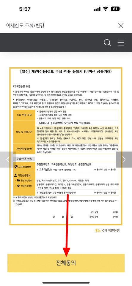 국민은행 일일 이체 한도 변경 방법