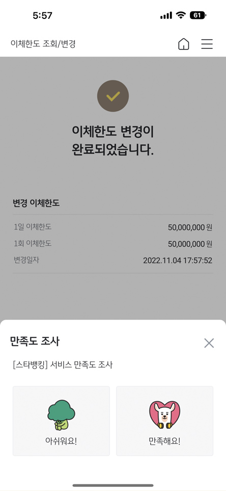 이체 한도 변경하는데 과정이 꽤 많긴 합니다만 스마트폰 환경에 익숙하신 분들이라면 어렵지 않게 빠르게 진행하실 수 있을 겁니다.